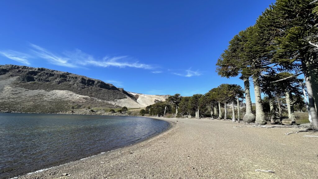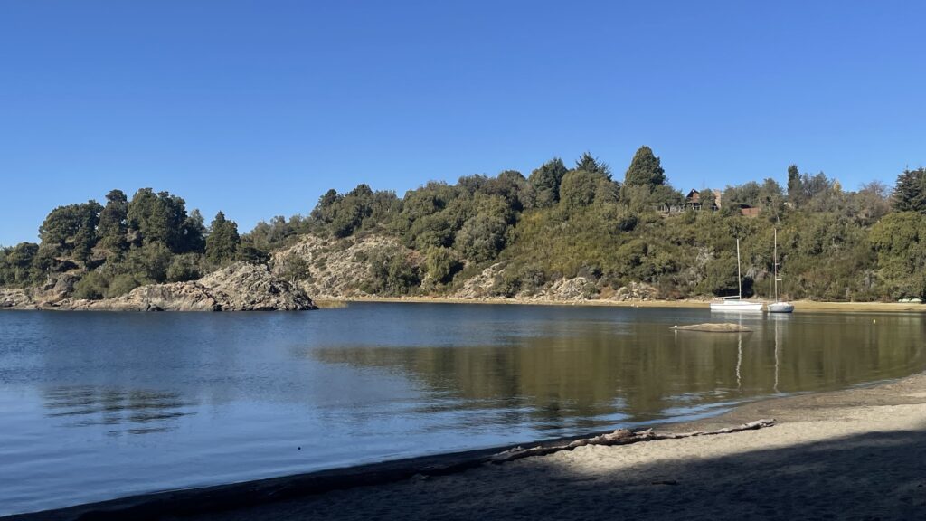 Punto de acceso al lago Aluminé. Ideal para paseos, fotos y actividades náuticas.